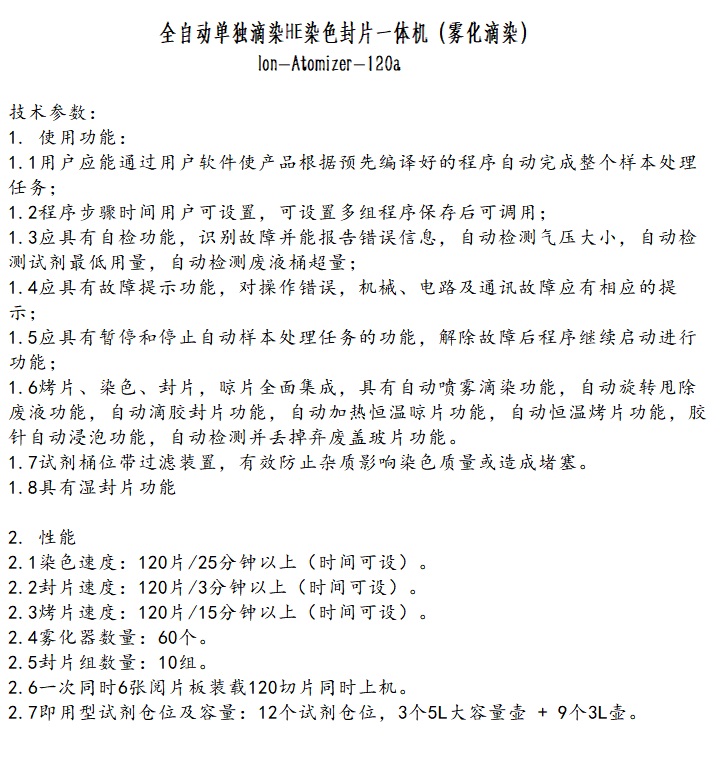全自动单独滴染染色封片一体机(离子雾化)) lon-Atomizer-120a全自动单独滴染染色封片一体机(离子雾化滴染)。